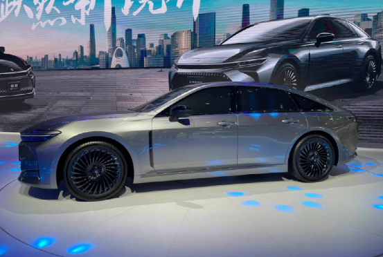 来到车身侧面,新车采用了贯穿式腰线,搭配侧裙处的造型,使得车身侧面的造型充满了层次感;其次,溜背的车身姿态配合密幅轮毂,以及前翼子板开孔的设计,给整车增添了不错的运动气息。车身尺寸方面,新车长宽高分别为4930*1840*1540mm,轴距则达到了2850mm。以更大气的尺寸格局,更高品质和更高舒适性,将赋予用户“头等舱”般的感觉,续写皇冠轿车新传奇。