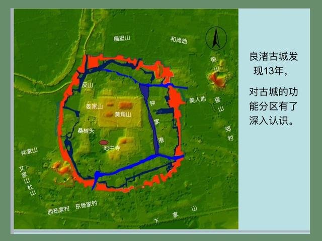 古城内有莫角山宫殿区、池中寺高地,反山、姜家山、桑树头都有贵族墓葬,钟家港是古河道