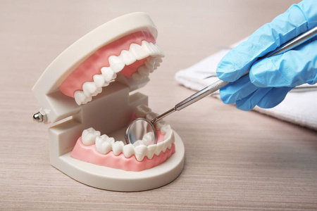 牙科实验室使用印模来制作病人的口腔模型,牙医和实验室技师慢慢地在模型上制作义齿,并移入病人的口腔。