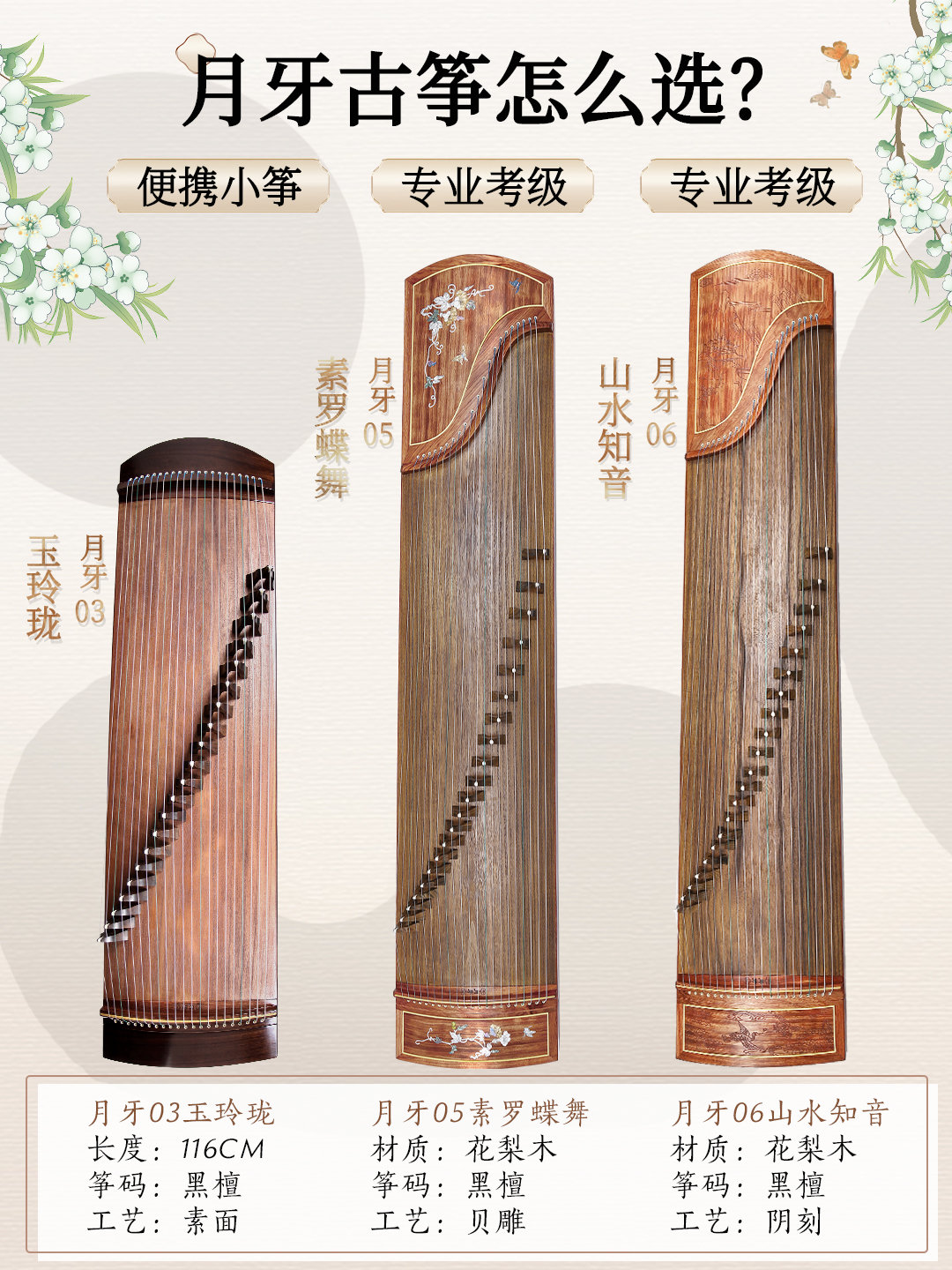 总的来说,月牙古筝每一架都是精品,大家按照自己的预算和需求来进行选择就可以了。