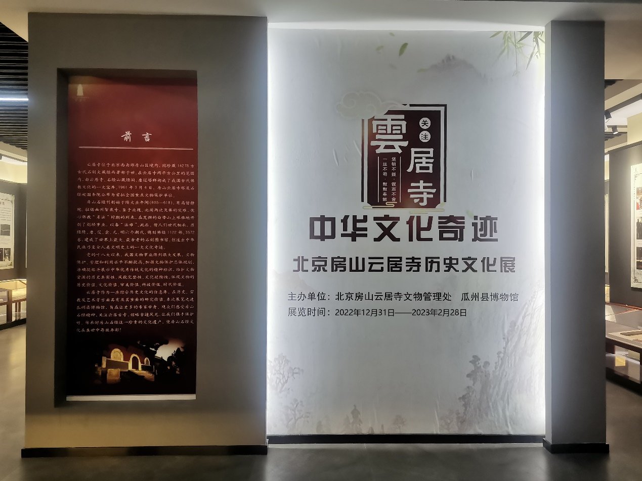 为传承中华优秀传统文化,弘扬房山石经精神,深入发掘云居文化的独特内涵,让珍贵的文物“活”起来,2022年12月31日,“中华文化奇迹——北京房山云居寺历史文化展”走进甘肃,在酒泉市瓜州县博物馆顺利开展,为当地群众奉献了一道有着1400年历史积淀的文化盛宴。
