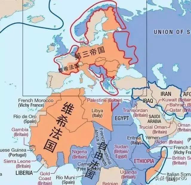 东南亚的法属印支被日军占领,非洲殖民地则一分为二,分别效忠德国的傀儡政府——维希法国,以及流亡英国的自由法国,法国对殖民地的统治被削弱。