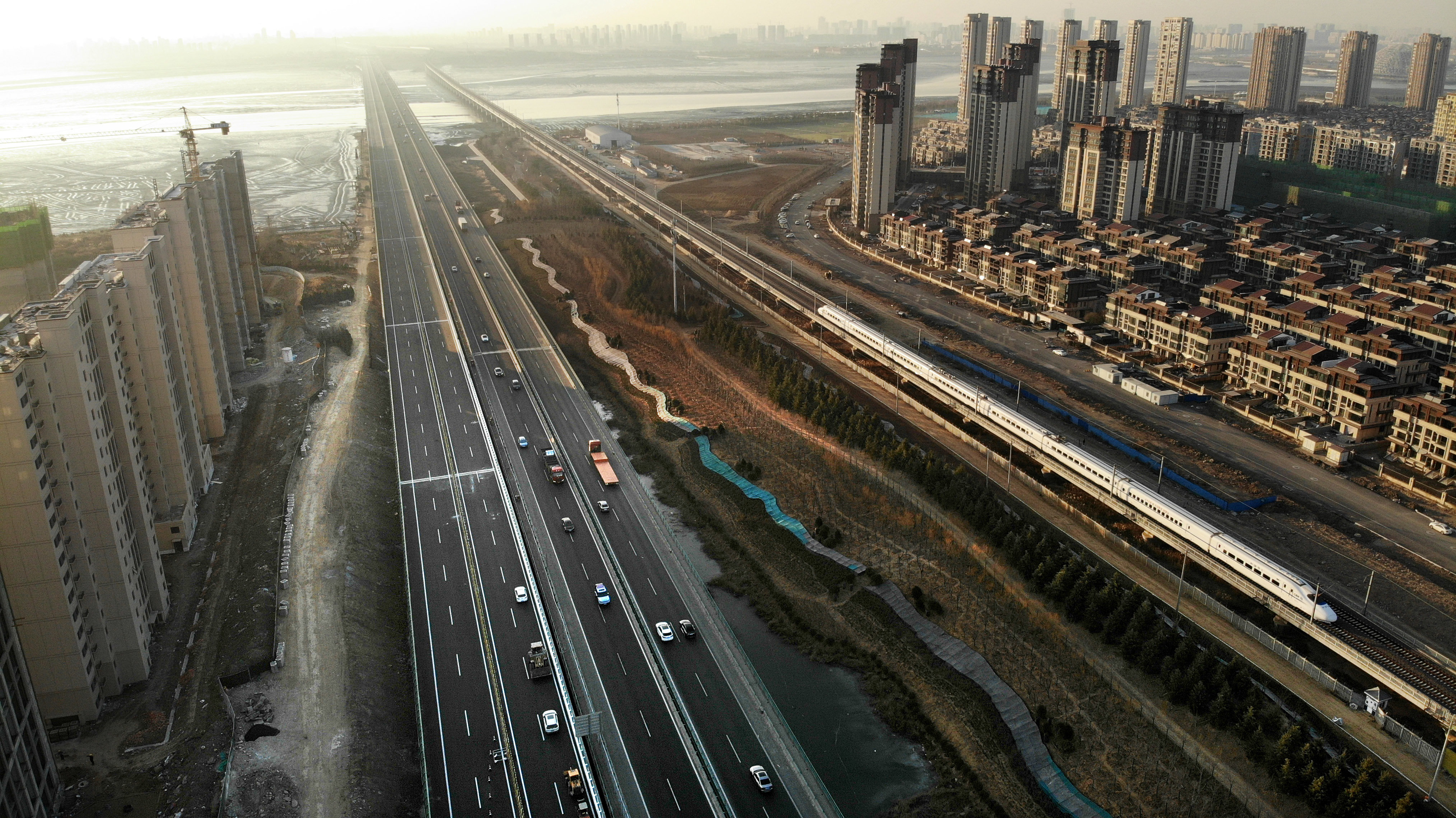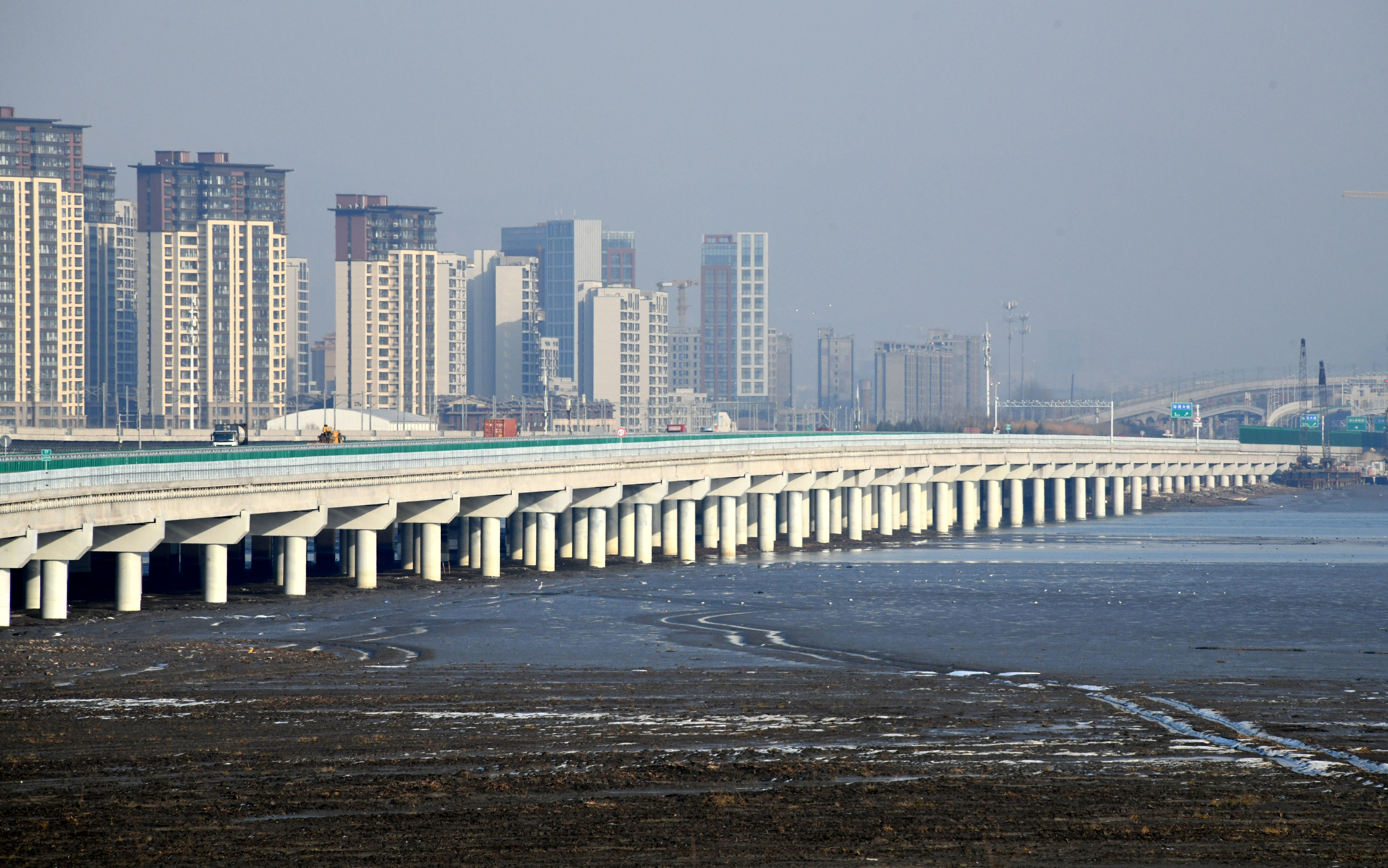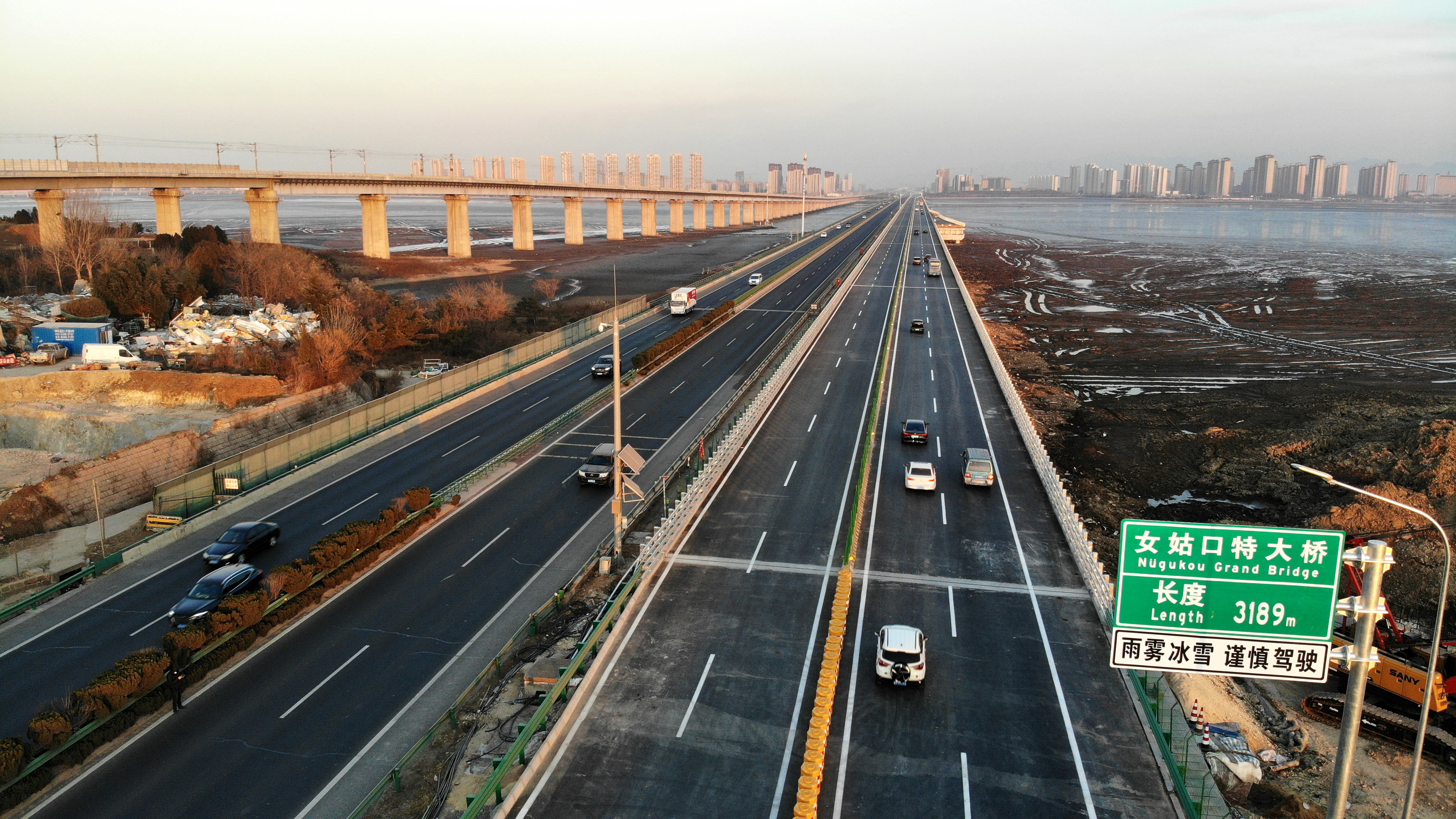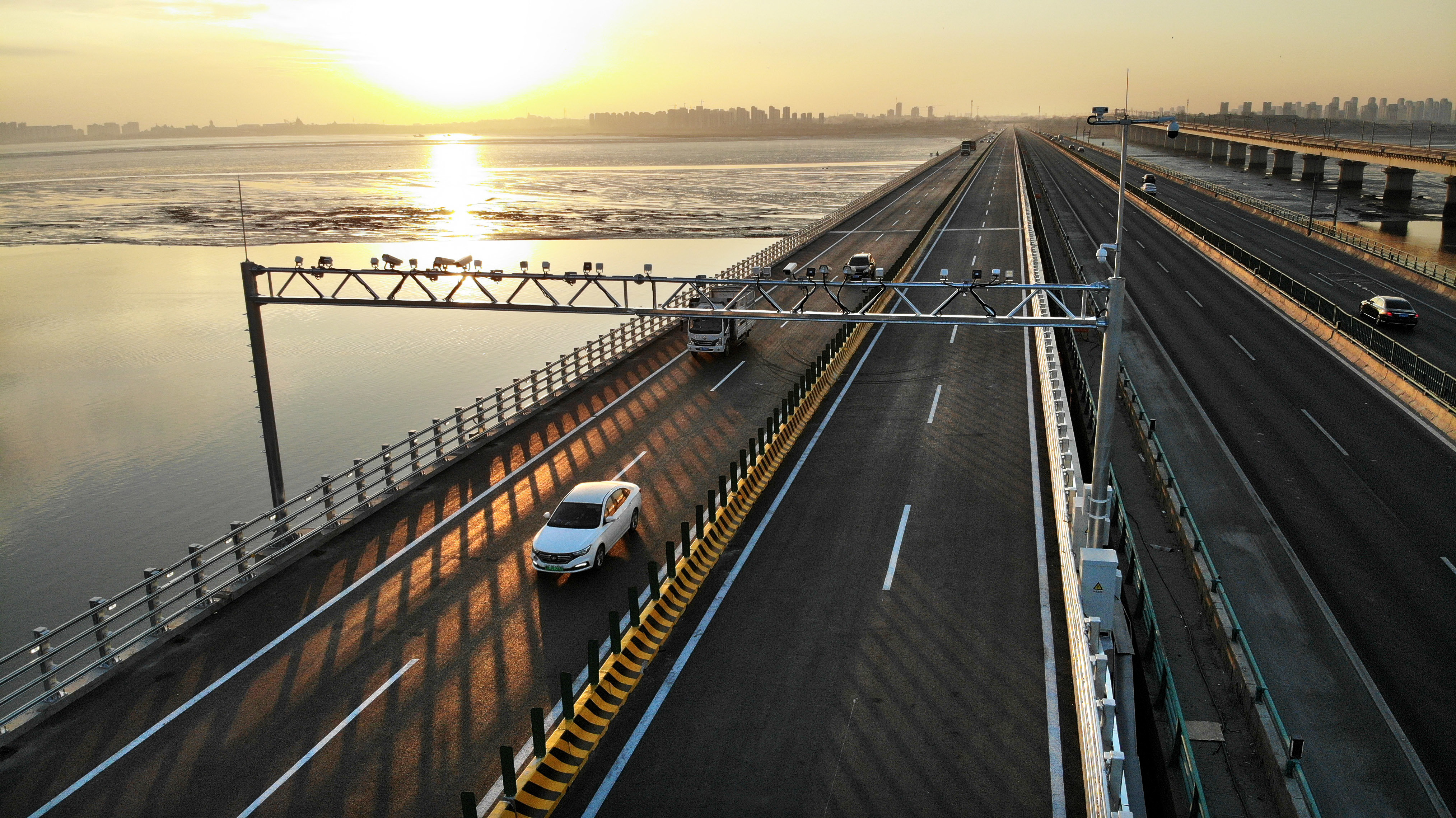 这是12月30日拍摄的建成通车的青兰高速公路改扩建工程女姑口跨海特大桥。新华社记者 李紫恒 摄