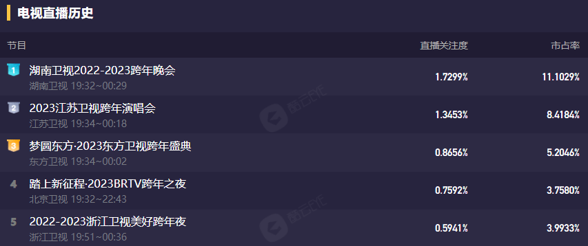 某种意义上,这场跨年晚会收视之战也是完成了对接下来的春晚收视大战的预演,由此也能看出几点晚会大战的收视规律: