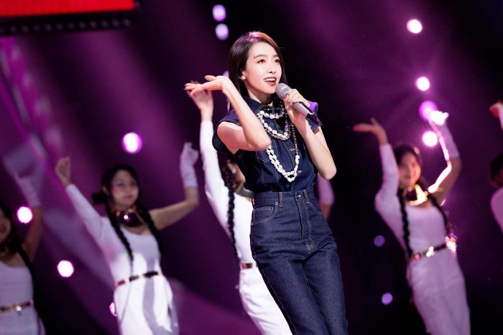宋茜的开场秀就气场不俗,身穿牛仔套装搭配珍珠项链,一首《闪闪惹人爱》又甜又辣,会唱又能跳的大美女舞台魅力瞬间回来了,随着节奏摇摆,坠进迷人漩涡,观众终于再次等到宋茜 的唱跳舞台了,这是什么有生之年系列!