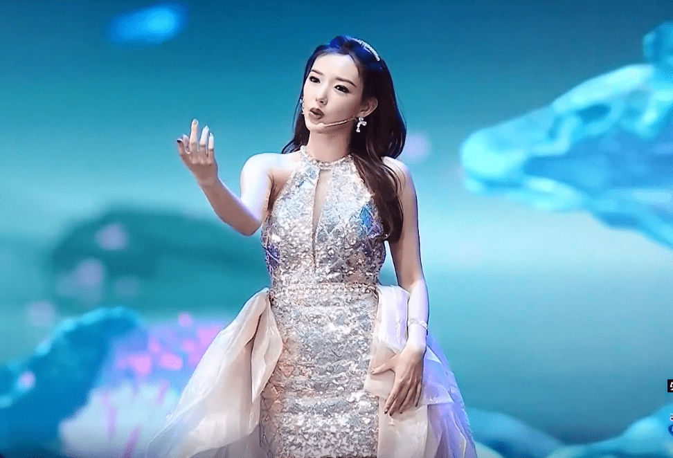 相比之下,一袭亮片人鱼公主裙登台带来独唱《我曾遇到一束光》的程晓,表演就多少有些争议。