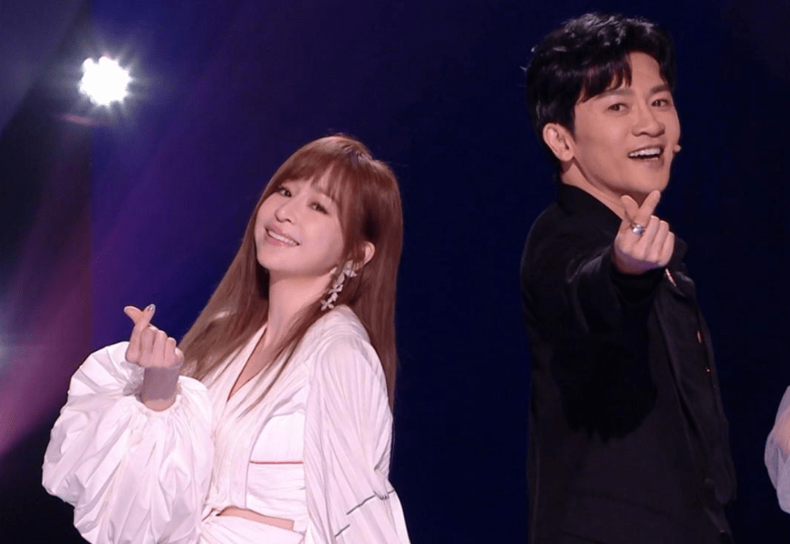 还有去年芒果台“乘风破浪”和“披荆斩棘”两个节目的冠军:王心凌和苏有朋,同台互唱对方的成名作:王心凌唱《红蜻蜓》、苏有朋唱《爱你》,这算标准的定制“名场面”了!