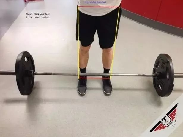 传统硬拉中,双脚的站距与髋部同宽,一般不超过肩宽。避免下蹲时,膝关节内扣,造成关节磨损。