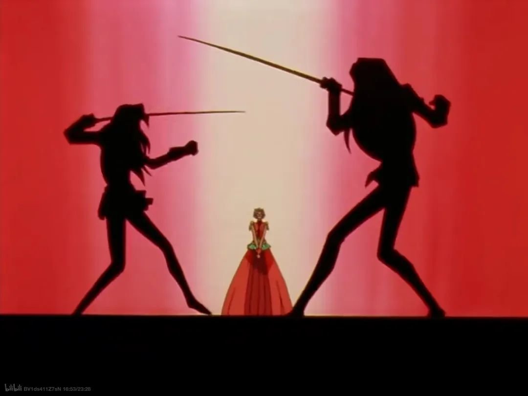 决斗存在着文学性的重复特异,拥有舞台剧质感,辅以欢乐学园生活为调剂,《少女革命》的碎片式组合一再反复,造就诗歌般强大的感染力。