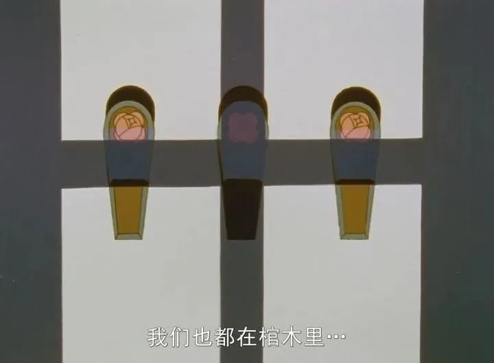 蔷薇新娘躺着的棺木,决斗者们躺着的棺木,乃至整座学园都是棺木的形状,无疑隐喻了父权下的社会语境,像一座巨大的棺木将世界包裹,身处其中的人掀开自己的棺木,看见他人的棺木,走出他人的棺木,看见环境的棺木,突破世界之壳后,才反应过来这整个世界就是一座棺木。