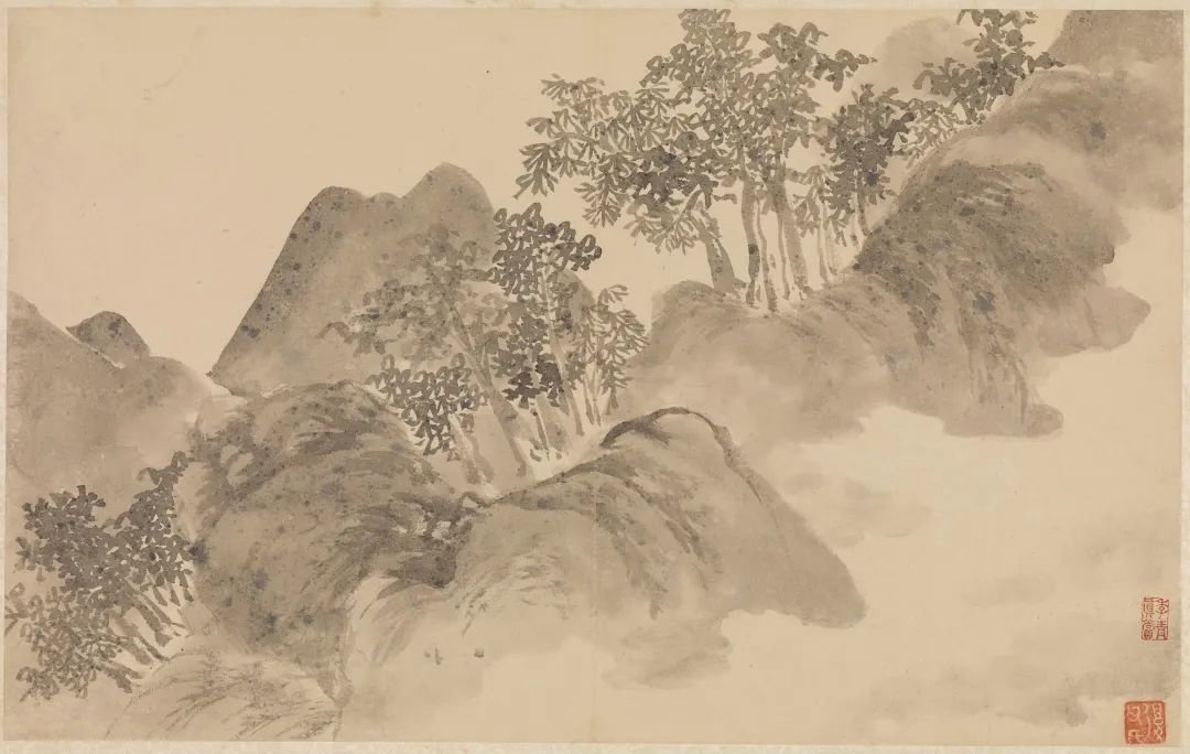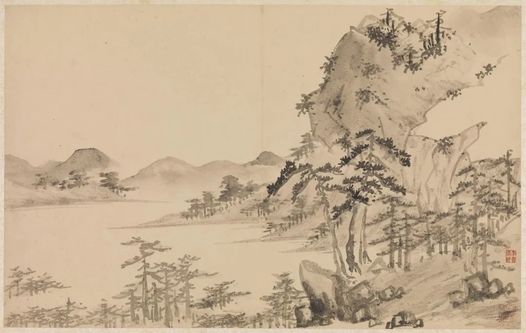 明 陈淳 山水 册 岩松浮霭