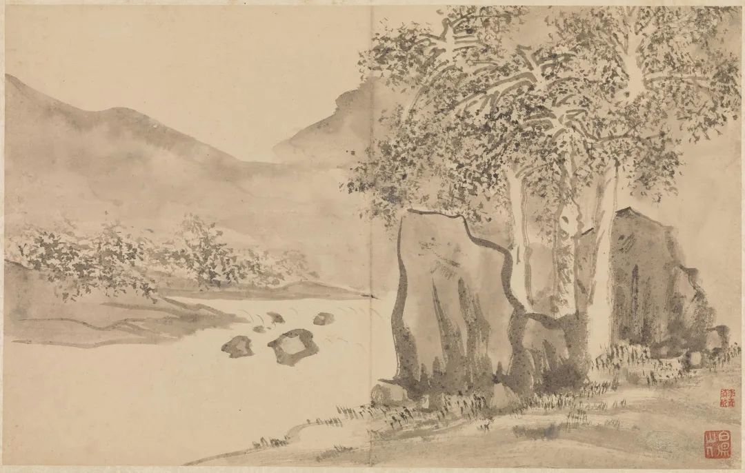 明 陈淳 山水册 乔木秋阴