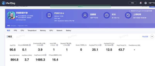 《英雄联盟手游》在90帧模式下,也跑出了平均帧率90.6帧的好成绩。两款游戏都近乎满帧运行,在特效乱飞的团战中也能保持流畅的体验,技能释放跟手,流畅度方面毋庸置疑。