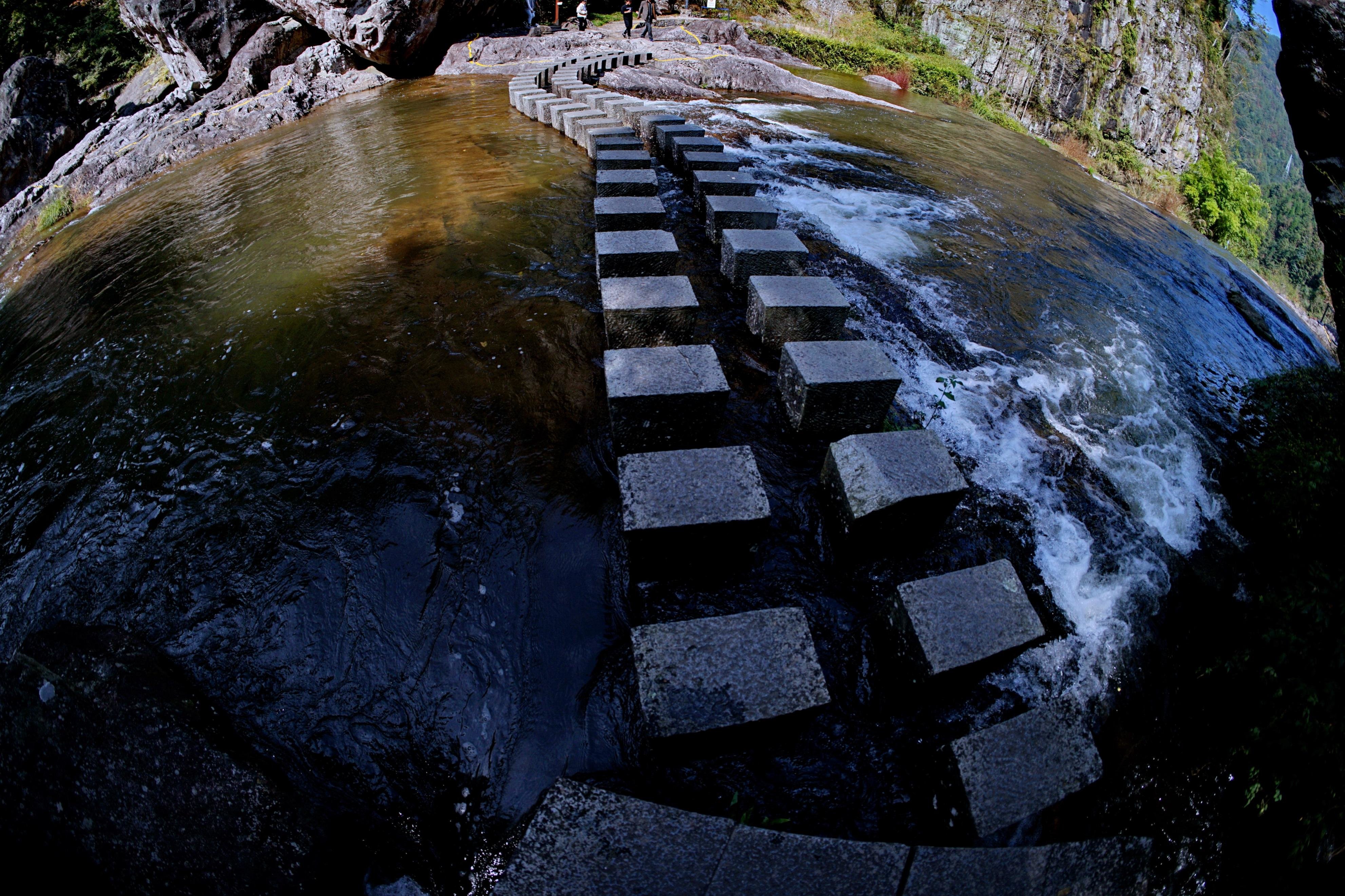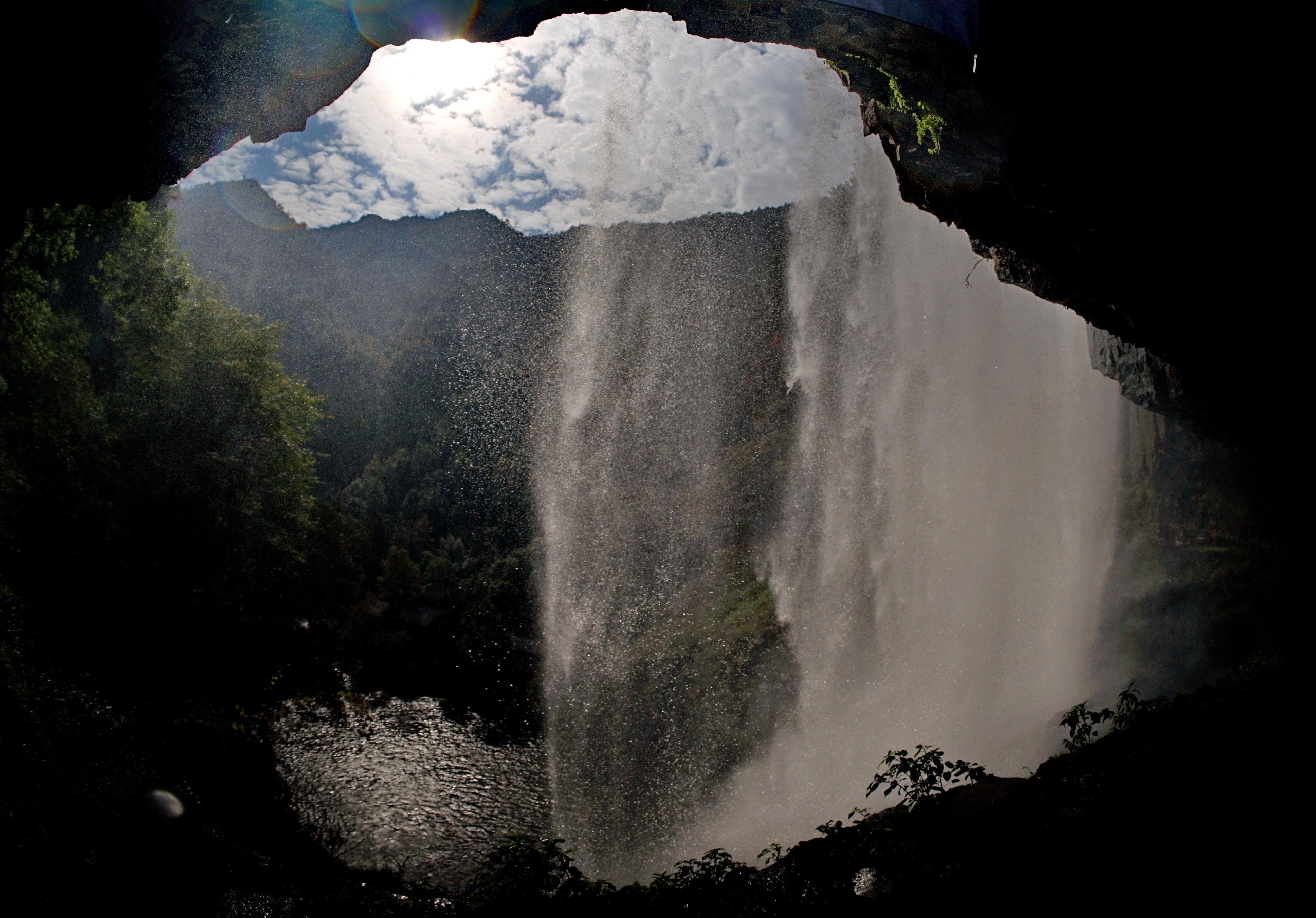 在这里,一处处水流、一块块岩石、一个个瀑布、一片片树林,都让我们驻足停留。来到二漈,需撑伞经过,这水帘瀑布太梦幻了,我们来来回回走了好几回。