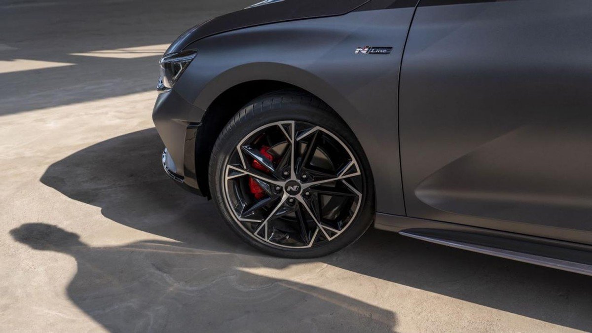 从侧面看,全新菲斯塔 N Line车身低趴,线条流畅,其腰线的灵感来源于赛车的灵动腰身,前后交相互呼,整体车身显得更具力量感和运动感。前翼子板上有“N Line”的专属徽标,标志着专属性能车的特殊身份,也增添了更多运动气息。18寸亚光N Line专属轮毂,配合红色制动卡钳,强调的仍然是高性能。