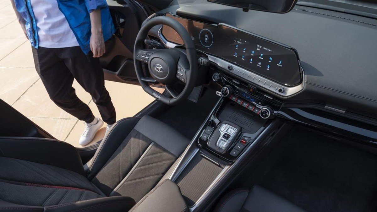 全新菲斯塔 N Line的座舱是以驾驶者为中心的沉浸式设计,中控台偏向主驾一侧以利于操作和观察。内饰整体依然是年轻运动风格,其细节表现为“D”字形平底方向盘、金属踏板以及座椅上的红色缝线等等,方向盘下方的“N Line”标识,以及集成在方向盘后方的换挡拨片,也时刻提醒着驾驶者这是一台性能车。