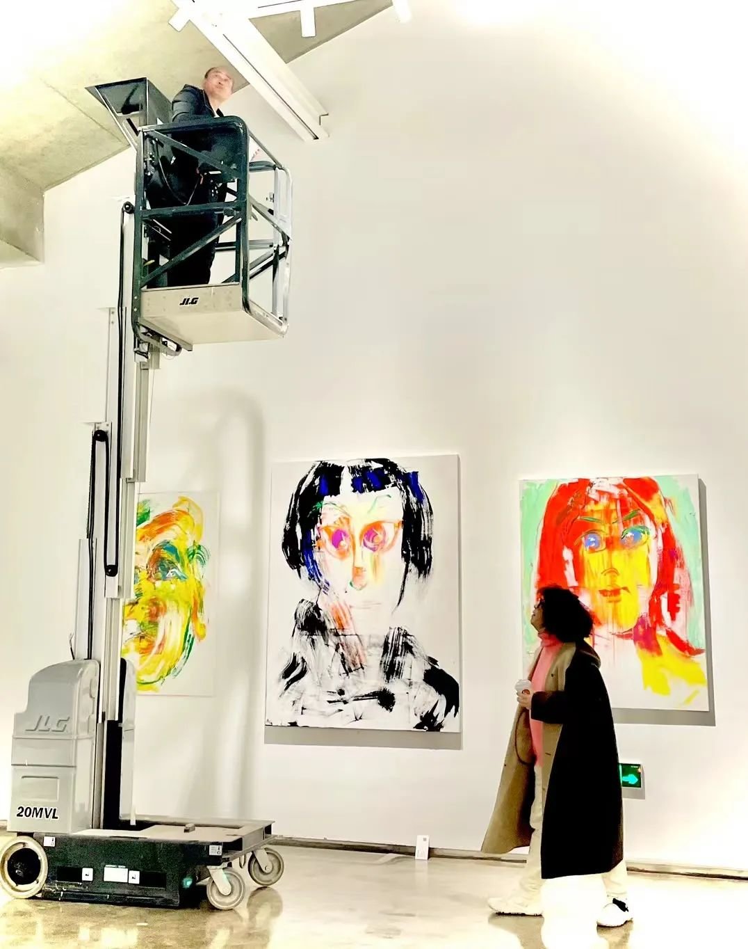 在最葵园艺术中心的新近展览“灿漫天风”中,林晨曦的三幅肖像作品正在展出,他在朋友圈展示了随机拍摄现场合照,并附言: