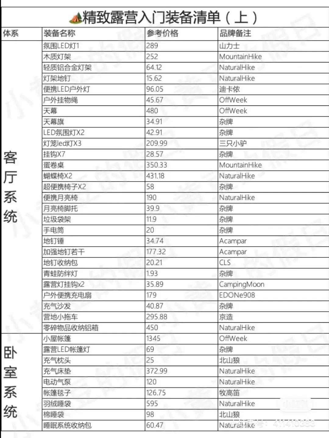 卡式炉、焚火台、保温箱,厨类用具必不可少;音响、串灯、煤油灯,氛围工具是灵魂;蚊香、防晒、创可贴,急救物品也得要。