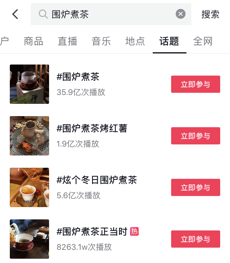 抖音平台上,“围炉煮茶”话题有35.9亿播放,“炫个冬日围炉煮茶”话题有5.6亿次播放,妥妥成为年轻人的社交新宠。
