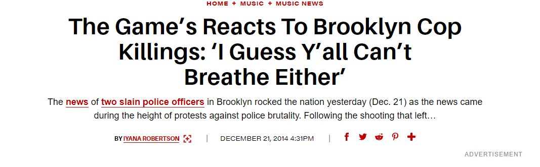 时任美国总统奥巴马在此时又站了出来,痛斥枪手枪杀警察的行为,并且对警察进行了高度赞扬。但是此举,却遭到了前纽约市长朱利安尼的指责,指责奥巴马刻意制造针对警察的敌对环境,此时所有人都讨厌警察。与此同时,一大批美国黑人都在为这起事件进行狂欢,一个艺名“The Game”的黑人说唱歌手,在其推特上写了一句“我猜你们也无法呼吸”。