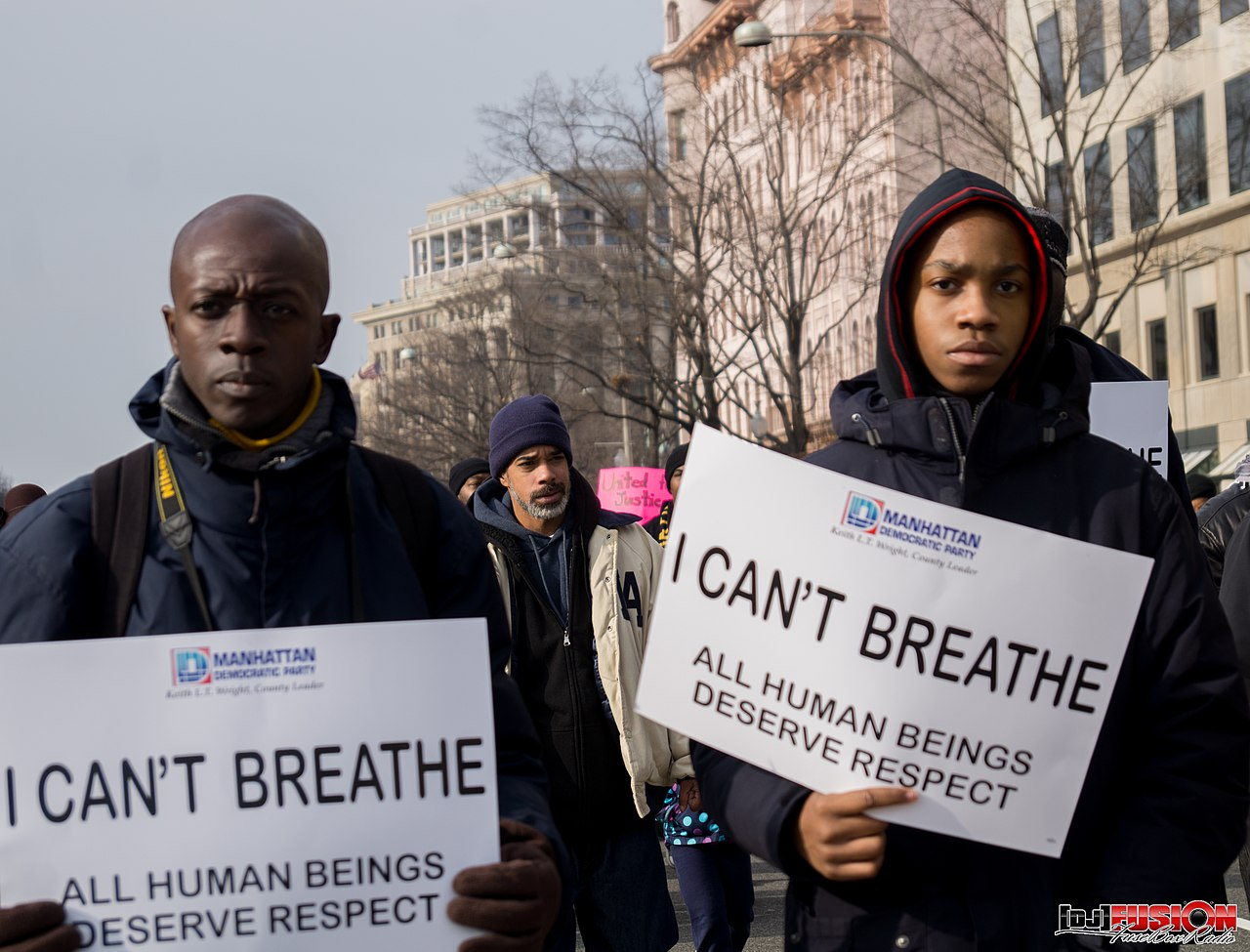 2014年12月,抗议者手持“我无法呼吸”的标语抗议