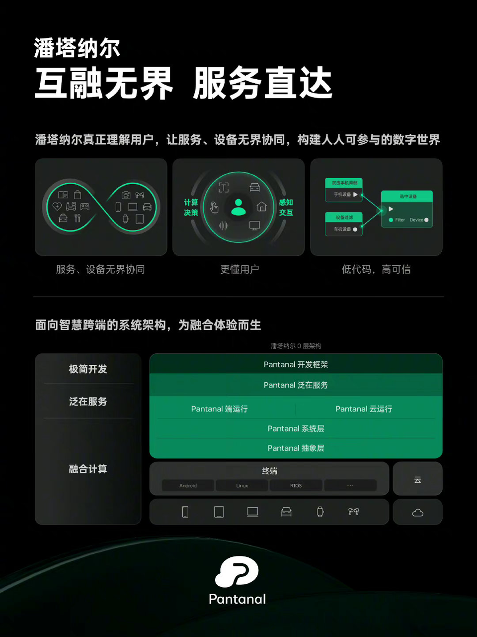 在今年的OPPO开发者大会上,OPPO发布了一款面向万物互融时代的智慧跨端系统潘塔纳尔,能够连接不同的设备、系统和服务,提升设备无缝连接能力,构建以人为中心的泛在服务。基于潘塔纳尔系统能力,能够实现服务与设备的无界协同,让不同品牌的智能终端实现互联互通,摆脱硬件局限。简单来说,用户只需要一个OPPO账号就能获得互联互通的多终端体验,并且能够根据不同的使用场景,获得对应的功能和服务。