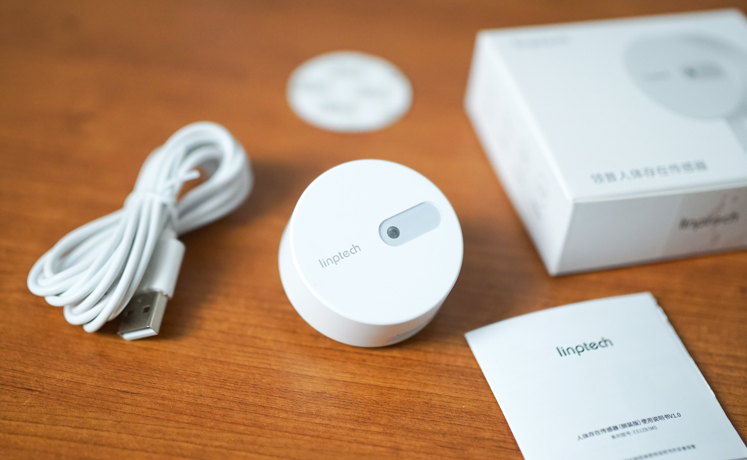 领普人体存在传感器包装简洁,内含传感器主体、Type-C电源线、磁吸支架、说明书等。