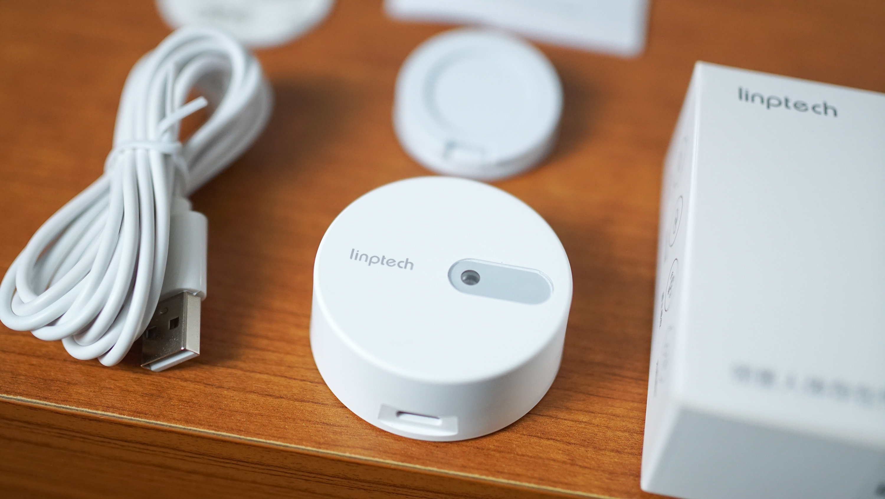 首先在外观方面,领普人体存在传感器为圆柱体造型设计,正面仅有LOGO和集成了按钮、指示灯的跑道设计,机身上有一个Type-C电源接口,工作状态下需要5V1A进行供电。