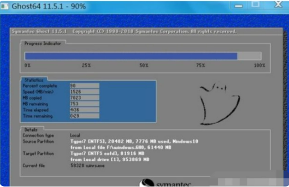 3.当安装确定后,将开始复制Win从10个文档到D盘大约需要五六分钟。这个过程是在Windows进入复制窗口后,不要移动键盘,以防复制错误。