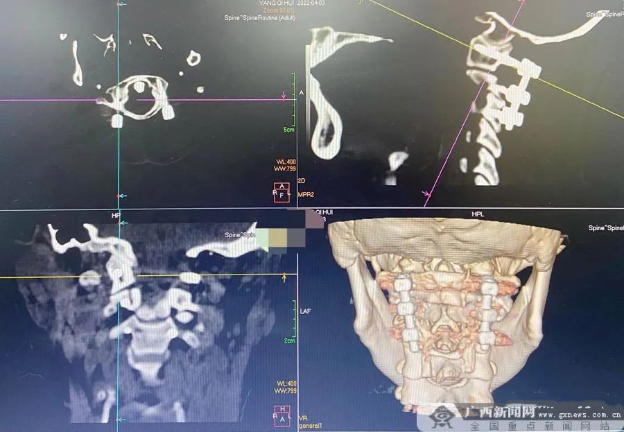 △术后复查上颈椎CT显示螺钉位置良好。广西新闻网通讯员 李亮 供图