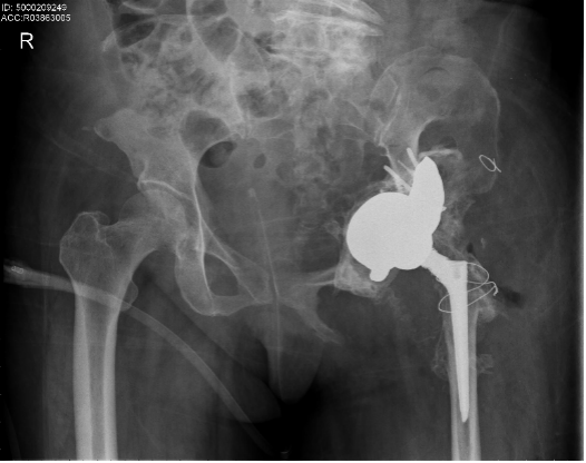 4年前,尹女士因为自幼跛行,左髋关节疼痛逐渐加重就诊于当地医院,诊断左侧髋关节发育不良、左髋关节脱位,并接受了左侧全髋关节置换手术。术后患者康复情况可,能扶拐行走。但半年前尹女士的左髋部再次出现疼痛,不敢行走。在家人的劝说下,尹女士坐轮椅来到大连大学附属中山医院的赵德伟院长门诊。