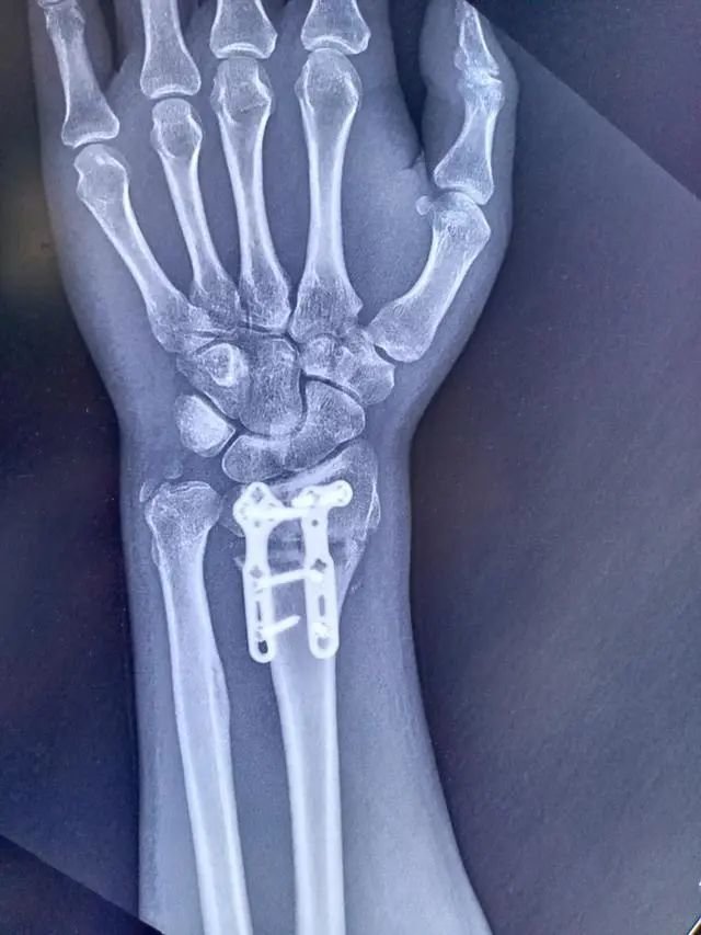 创伤骨科副主任医师霍延青团队经过术前评估,利用数字技术和医科交叉联合,为患者量身定制了手术导板,实施精准手术。术后,患者腕部功能得到极大改善,手指麻木消失,握力恢复到接近正常。