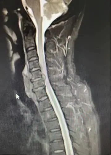 患者陈XX,男,51岁,患者自述于8月前无明显诱因出现颈部疼痛,劳累后疼痛加重,曾实施“针灸、拔罐”等治疗,症状有所缓解,期间仍间断感到疼痛,未予特殊处理,期间上述症状加重并出现四肢麻木、不适,以右手食指、中指,左手五指,右下肢膝关节以下,左下肢足底为主,并伴左下肢乏力。患者为求进一步治疗,慕名至湘雅常德医院就诊,门诊以“脊髓型颈椎病”收入脊柱外科。
