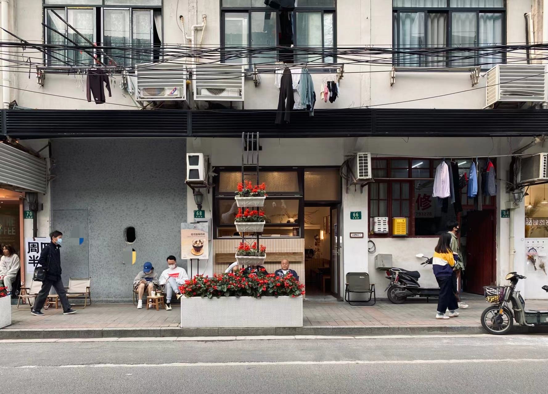 永康路是最早出圈的“上海咖啡一条街”,短短600米内有十余家咖啡馆。难得的是,永康路并非完全的商业街区,石库门建筑传递着历史的厚重气息。在咖啡馆间,还夹杂着数家临街民户。店铺二层撑开晾晒杆,被单、T恤飘着阳光的香味,干洗店、传统粉面店、烟杂铺,也在小路上安享时光。