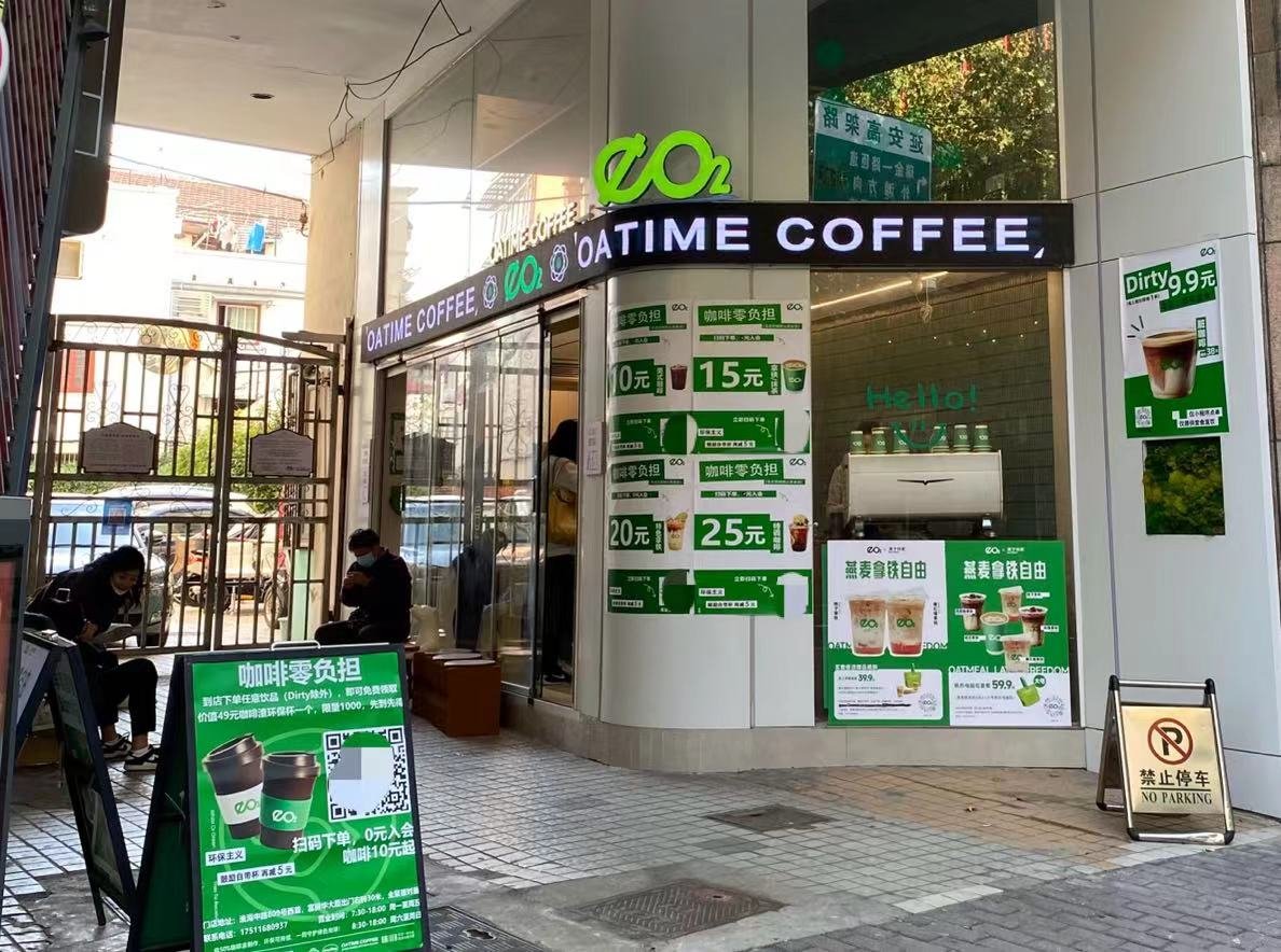 Oatime Coffee开在淮海中路的一个街角,正如其名,这是一家默认燕麦奶的咖啡店。