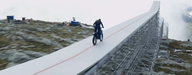 其中,3000多米骑摩托车高空跳崖的超高难度极限动作戏,是阿汤哥亲自上阵。