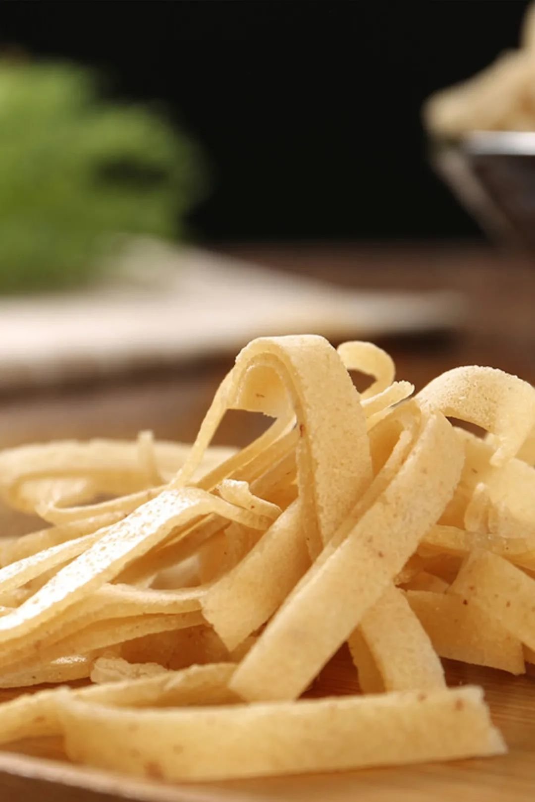 豆丝是湖北特产,用大米、绿豆等打浆摊成饼,然后切丝晾干而成,也是湖北人必不可少的年货。每年腊月,家家户户做豆丝,飘出浓浓的年味。如今过年,每家每户都会买上几斤,用大蒜、腊肉炒着吃。