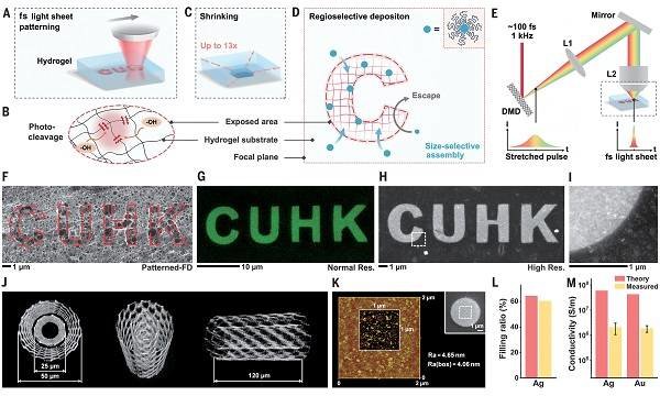 2022年12月,来自香港中文大学SHIH-CHI CHEN教授(陈教授)、卡内基梅隆大学 YONGXIN ZHAO教授(赵教授)进行了合作,提出了一种利用包括金属、金属合金、二维材料、氧化物、金刚石、上转换材料、半导体、聚合物、生物材料、分子晶体和油墨的材料库来制造任意3D纳米结构的策略。他们的研究成果已经发表在了《Science》上,题目为《Three-dimensional nanofabrication via ultrafast laser patterning and kinetically regulated material assembly》(《通过超快激光图案和动力学调节的材料组装进行三维纳米制造》)。