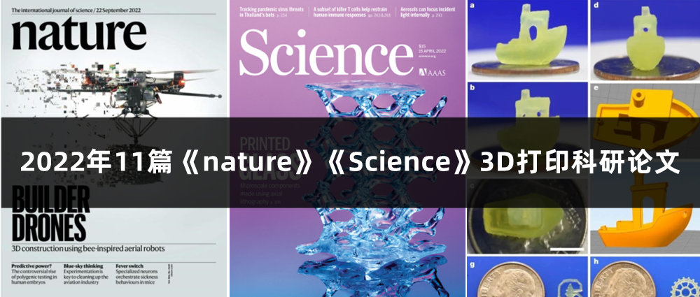本文南极熊将整理2022年在《Nature》和《Science》正刊上发表的11篇3D打印科研论文,其中有5篇论文中出现了中国科学家(含国外高校和国内高校)的身影,让我们来回顾一下2022年3D打印科研领域都有哪些重磅成果,整理的或有遗漏欢迎补充。