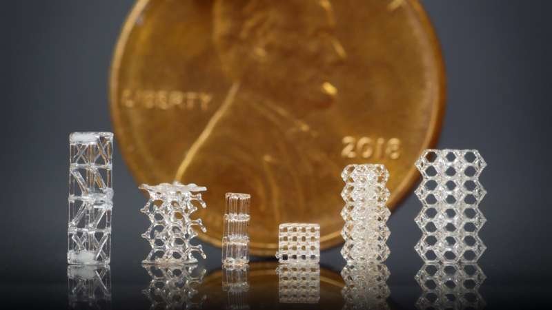 △3D打印的玻璃结构,与美国便士大小对比示例。图片来自Joseph Toombs