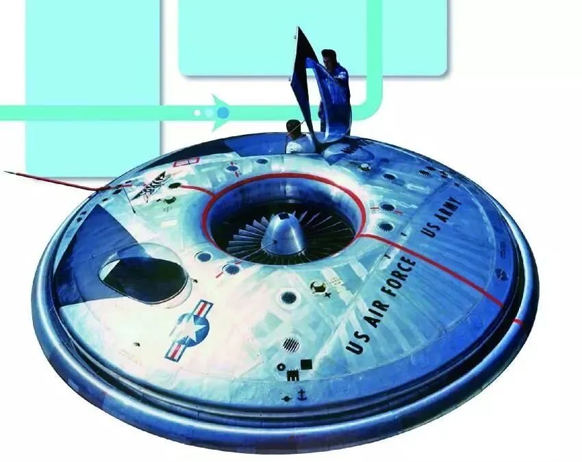 美国空军曾经期望拥有一种能够比声速还快的飞碟。1954年,加拿大航空工程师约翰·弗罗斯特开始秘密地为美国空军研制这种飞碟,这就是所谓的“瓢虫计划”。弗罗斯特雄心勃勃,他在草图上画出了一种垂直起降的圆形飞机(下图的圆盘飞行器),标明其最高时速达到声速的3.5倍,可以飞到2.4万米的高空。弗罗斯特甚至还在草图上画上坦克炮,这样就可以用它攻击苏联轰炸机。