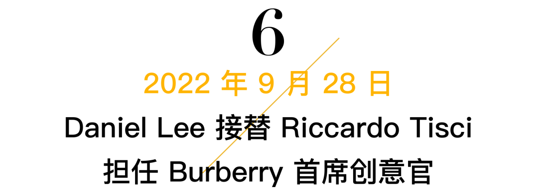 9 月 28 日,Burberry 宣布,前 Bottega Veneta 创意总监 Daniel Lee 接替 Riccardo Tisci 担任首席创意官。他的首秀将在 2023 年二月份举办的伦敦时装周上展示。