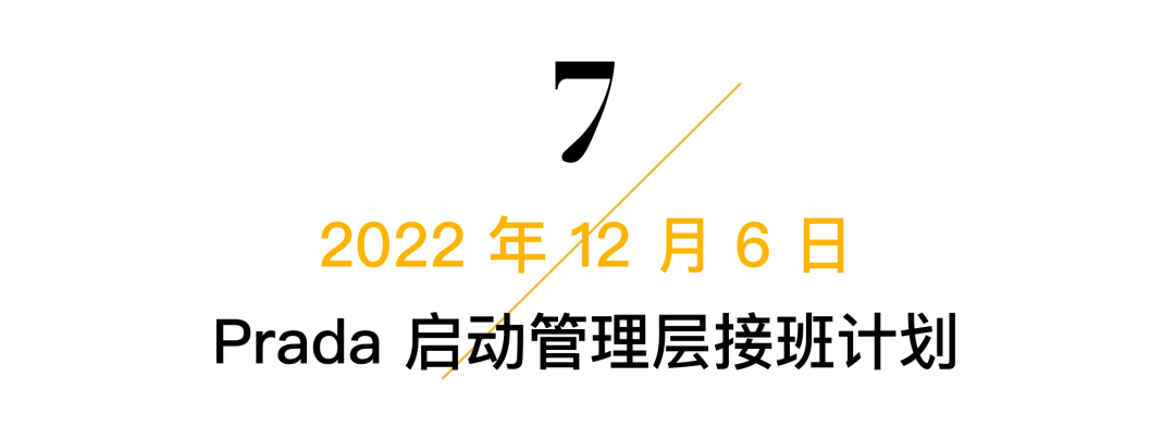 12 月 6 日,Prada 集团宣布决定在未来三年陆续将公司交由创意总监 Miuccia Prada 与前任首席执行官 Patrizio Bertelli 的长子 Lorenzo Bertelli 手中,并邀请曾在 LVMH、眼镜巨头 Luxottica 担任过要职的高级顾问 Andrea Guerra 加入集团,辅助 Lorenzo Bertelli 未来的继任。