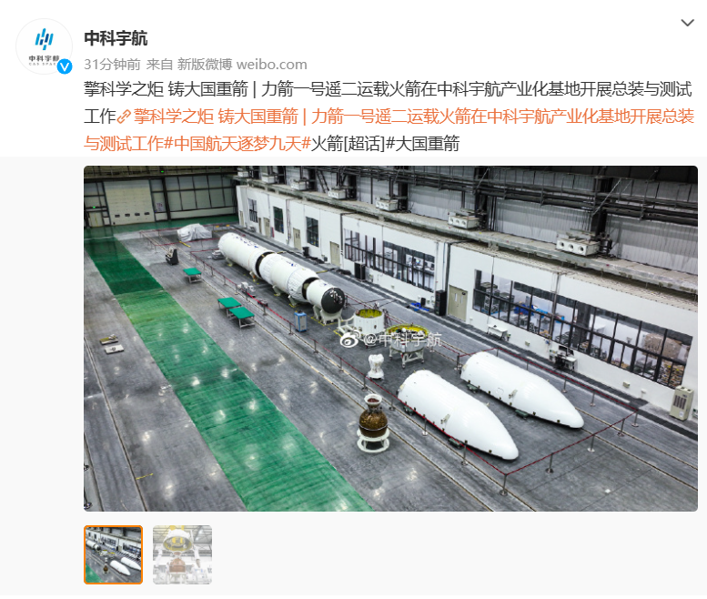 中科宇航今日宣布,力箭一号遥二运载火箭在中科空天飞行科技产业化基地按计划开展总装与测试工作,拟于 2023 年 5 月在酒泉卫星发射中心实施发射。
