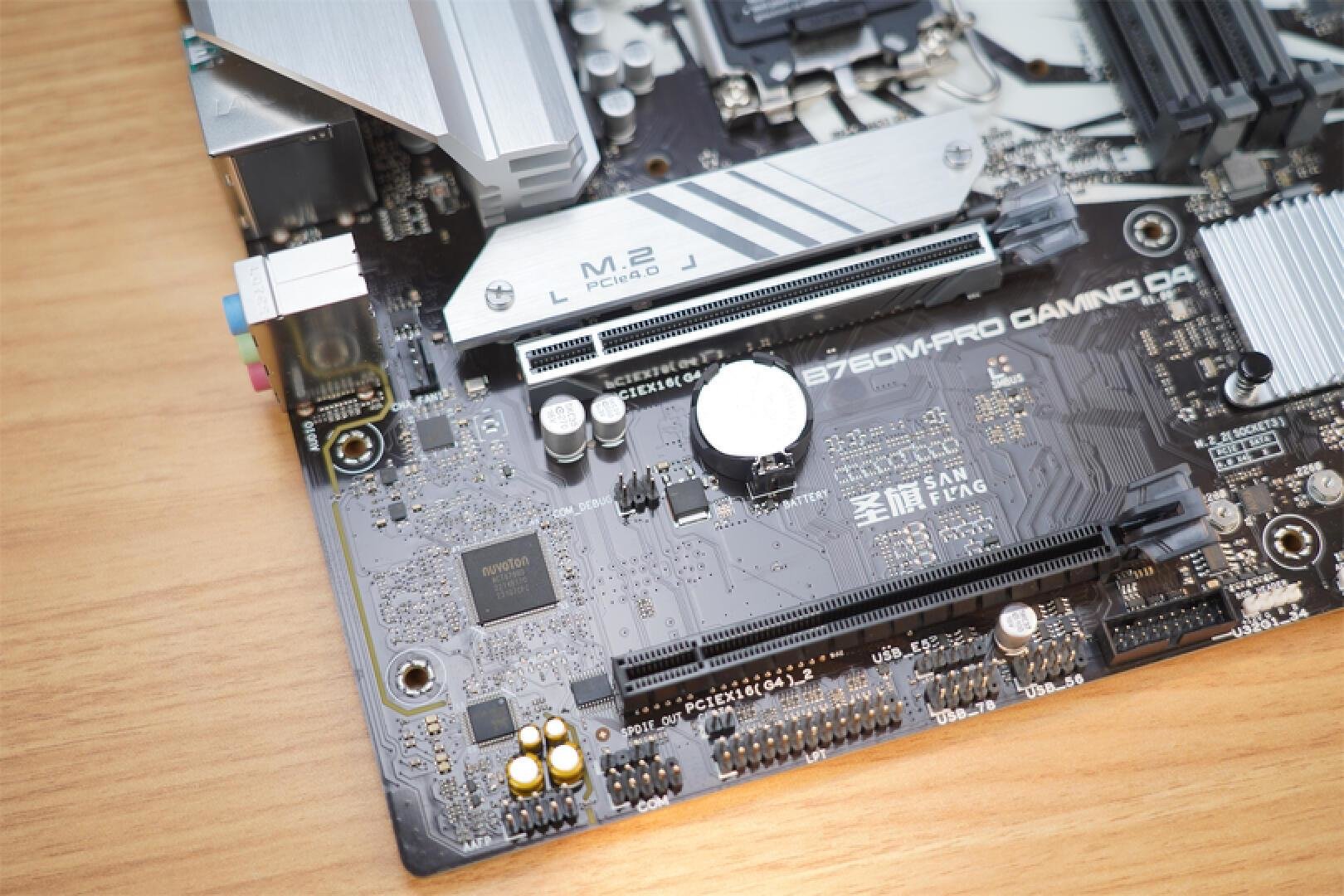 圣旗B760M-PRO GAMING D4提供了两个M.2 NVME硬盘位。主板的两条插槽均支持Gen4 x4,主M.2硬盘位为直连CPU,做系统盘最合适。主PCIex16插槽为PCIe4.0x16速率,而且做了装甲防护,性能和耐用度都有一定程度的提高。