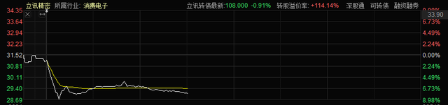 1月4日,立讯精密开盘后直线下挫,盘中跌幅达8.88%,股价最低下挫至28.69元。截至发文,该公司跌幅收窄至7.8%附近,股价约为29.04元,总市值约为2066亿元。