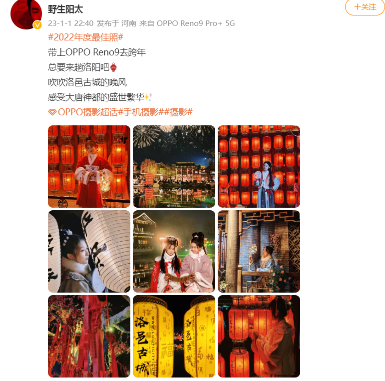 通过网友@野生阳太分享的夜拍,可以看出OPPO Reno9 Pro+在面对多光源、夜拍烟火和夜拍人像时的旗舰级影像实力,既能对高光进行合理压制,又能成功控制噪点带来画质的清晰通透,还能成功控制人像拍摄的自然和美颜,将其作为春节团圆、跨年夜拍摄的工具再合适不过。如果你也有在年底之前换新预算,想要入手一部影像能力出众的手机的话,不妨考虑一下有着双芯人像计算引擎加持的OPPO Reno9 Pro+。