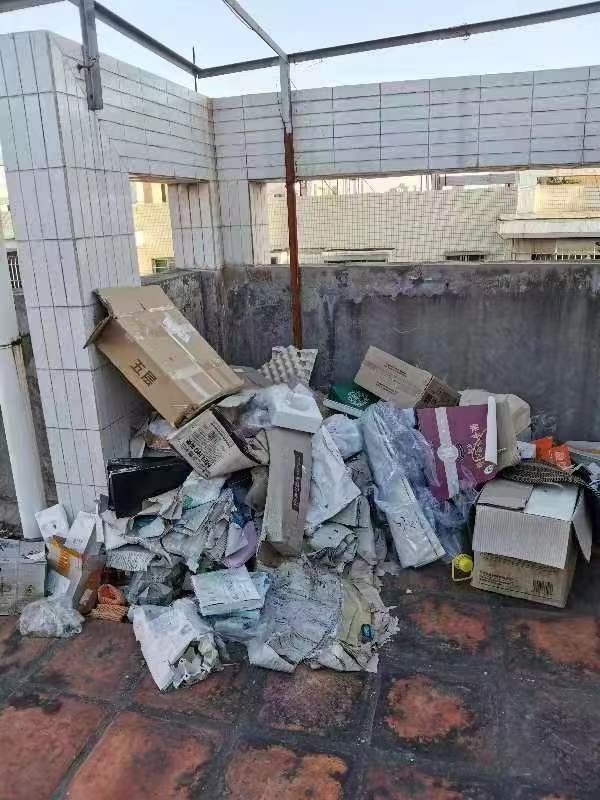 保洁员为了高效,直接把垃圾放在天台堆放