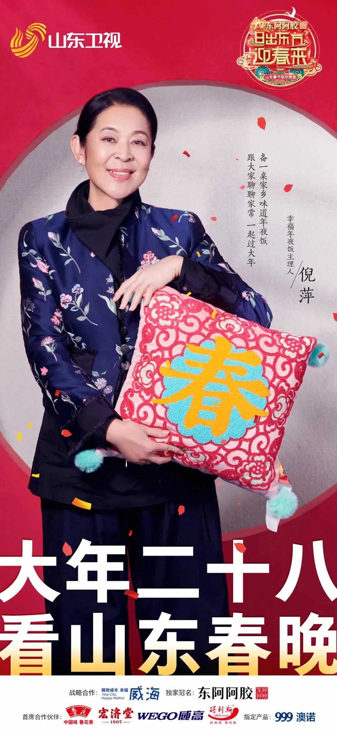 今年山东春晚主持阵容全新升级,威海籍主持人倪萍老师时隔37年再次加盟,担任“年夜饭主理人”,在“姥姥小馆”中推介家乡美食,送出山东手造盲盒礼物。讲姥姥的话,从姥姥语录的角度,在与晚会嘉宾的互动中,在浓厚的春节氛围中,表达出山东人独有的真情与厚道。