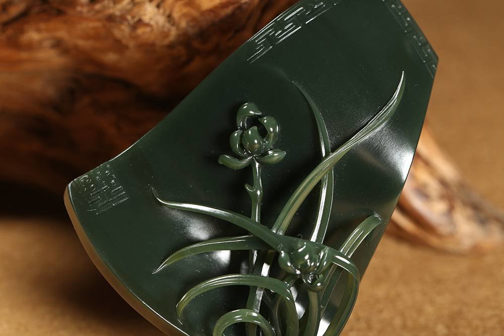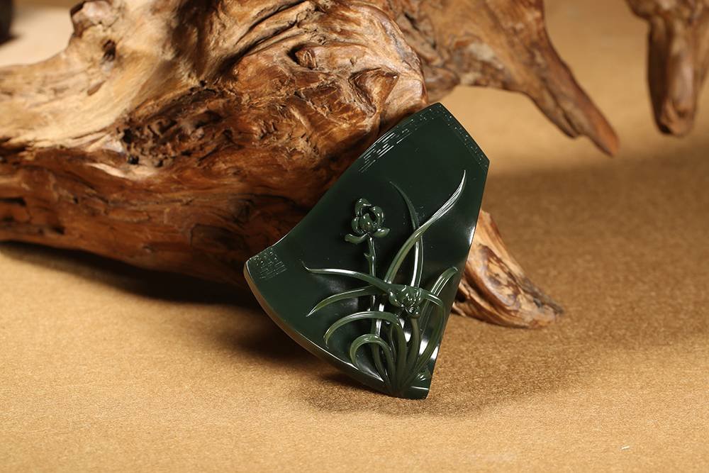 是谓幽兰入室,不采而佩,以上乘青海青玉为材,干净均匀的玉色,带来沉稳隽永的既视感,镂空雕琢兰草,以呈坚韧不折之姿态,周边点缀古拙纹饰,老味十足,绝妙的S型设计搭配丰富的层次感,使整件作品生机盎然,极具视觉冲击力。